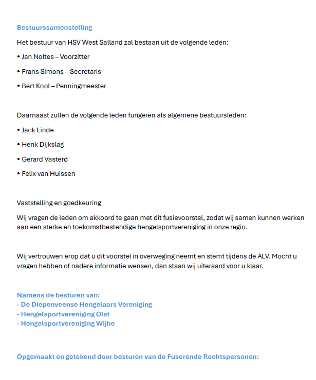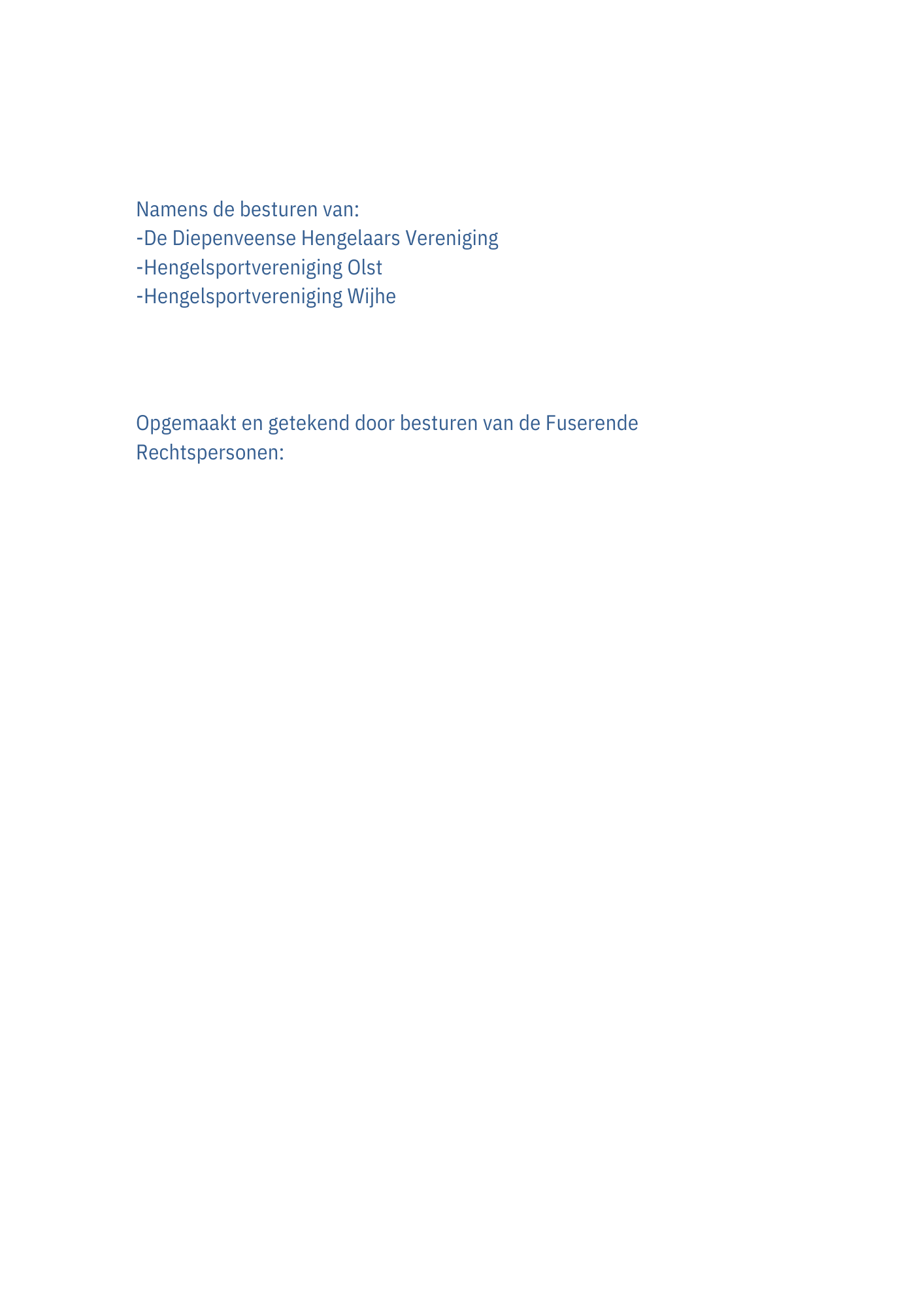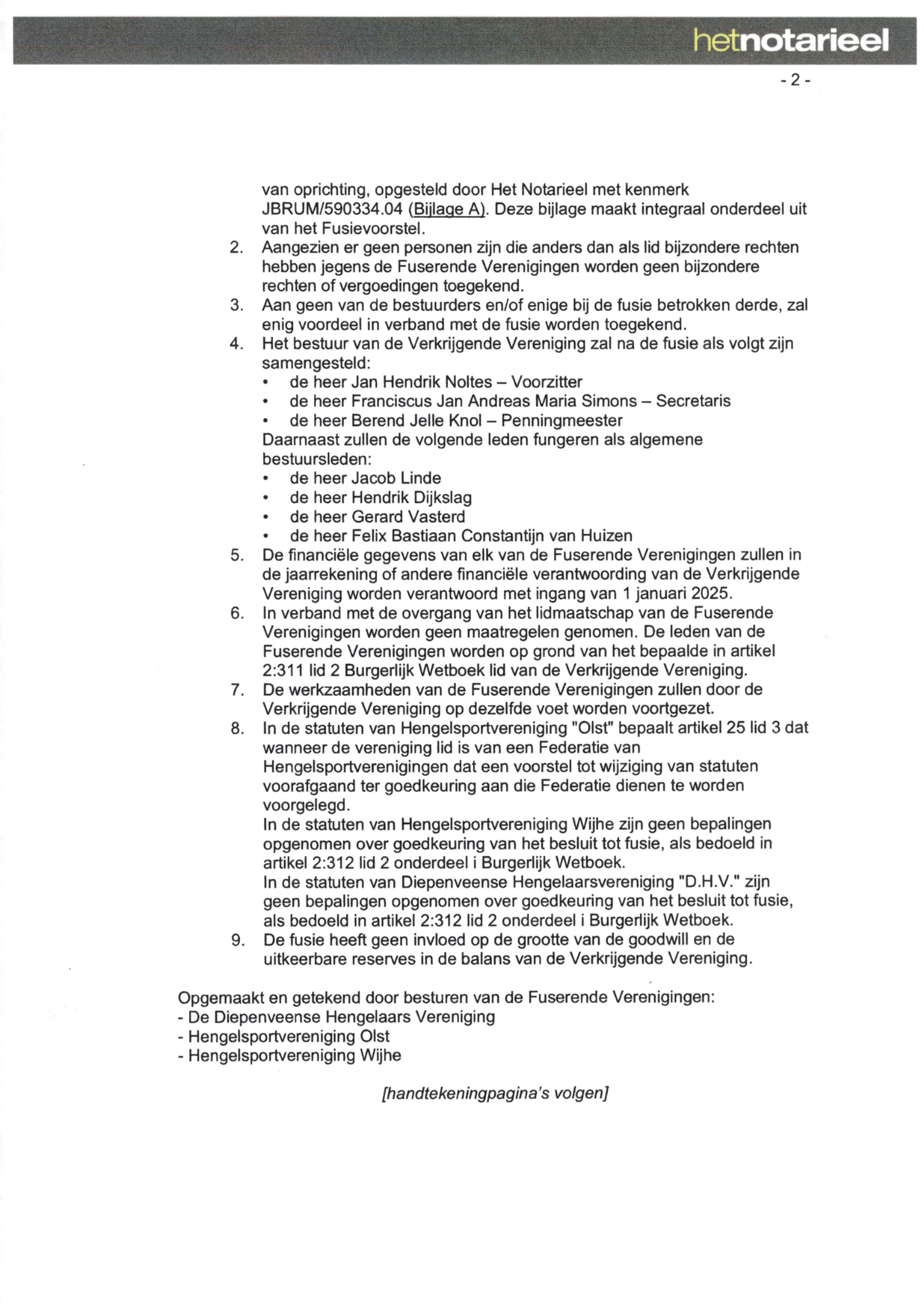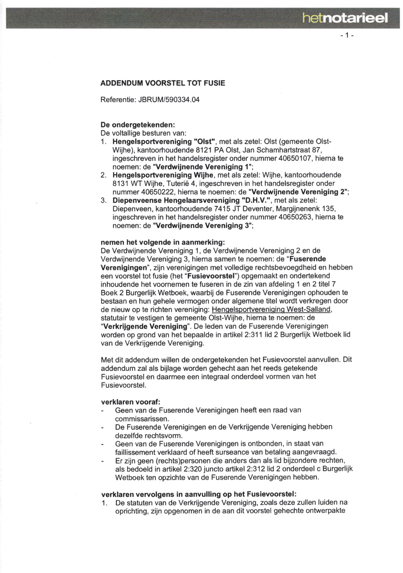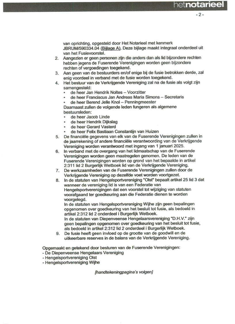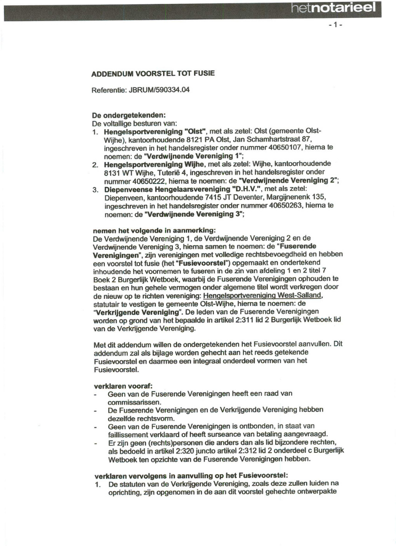 - Addendum Voorstel Tot Fusie getekend door HSV Olst en De Diepenveense Hengelaars Vereniging