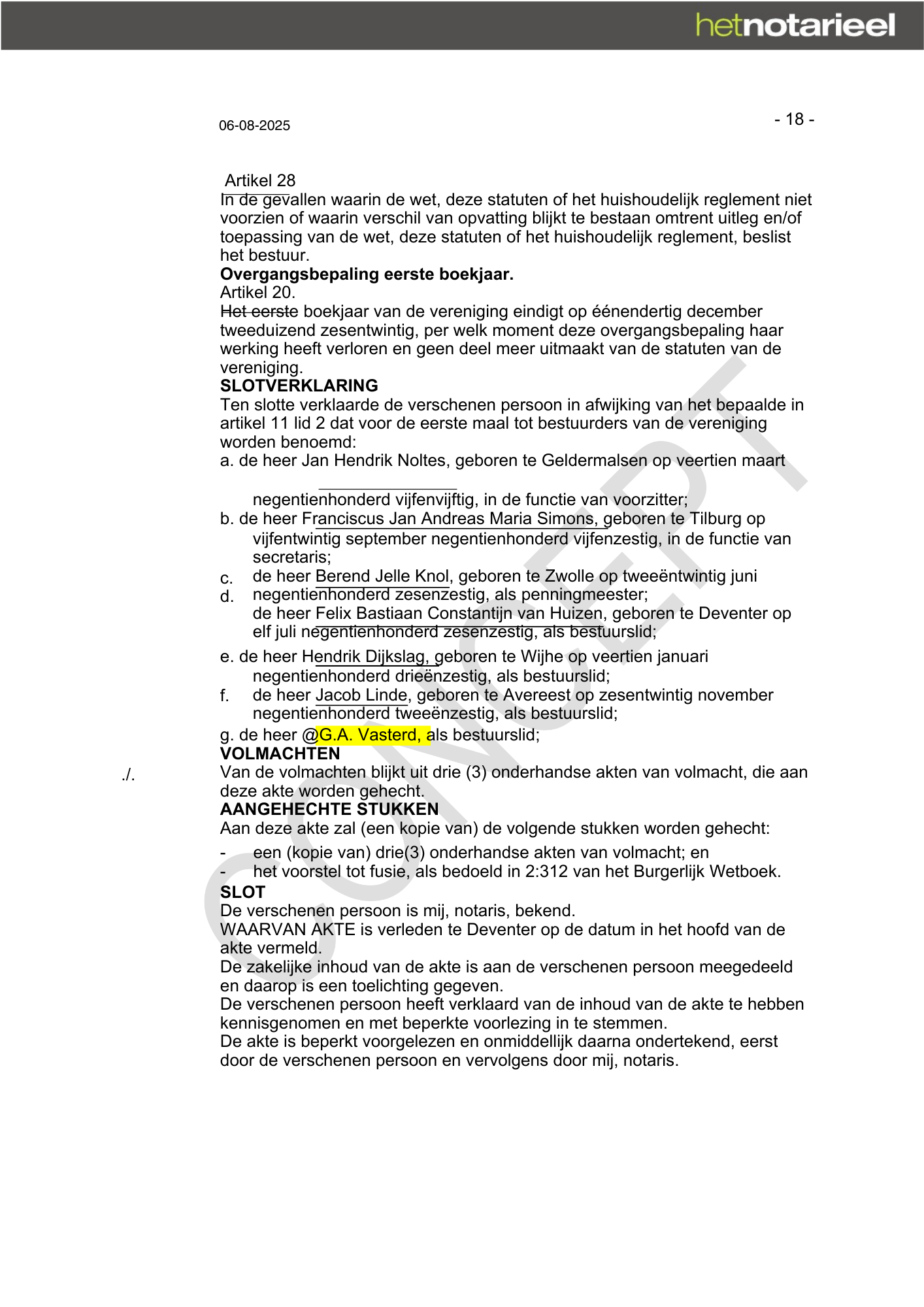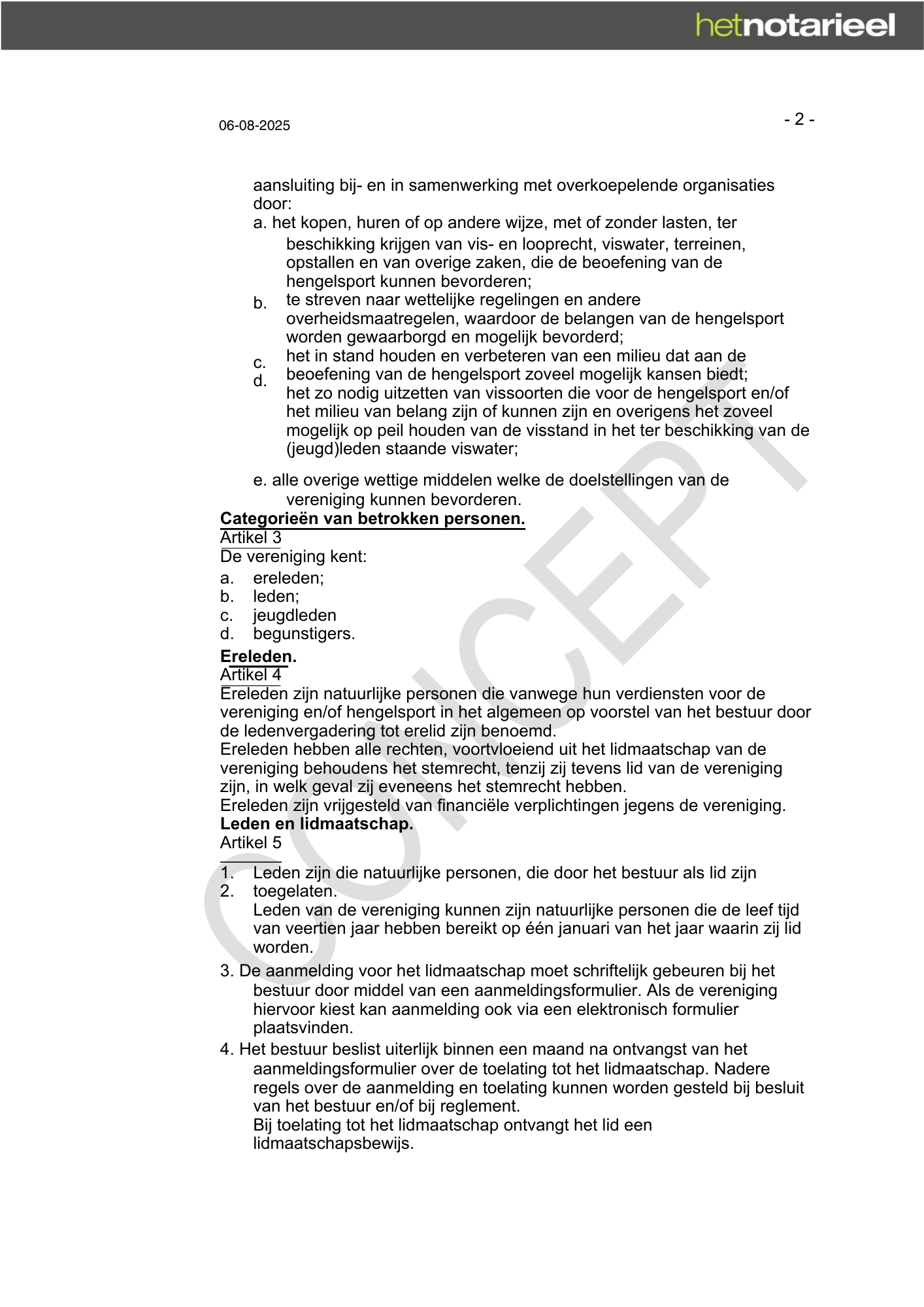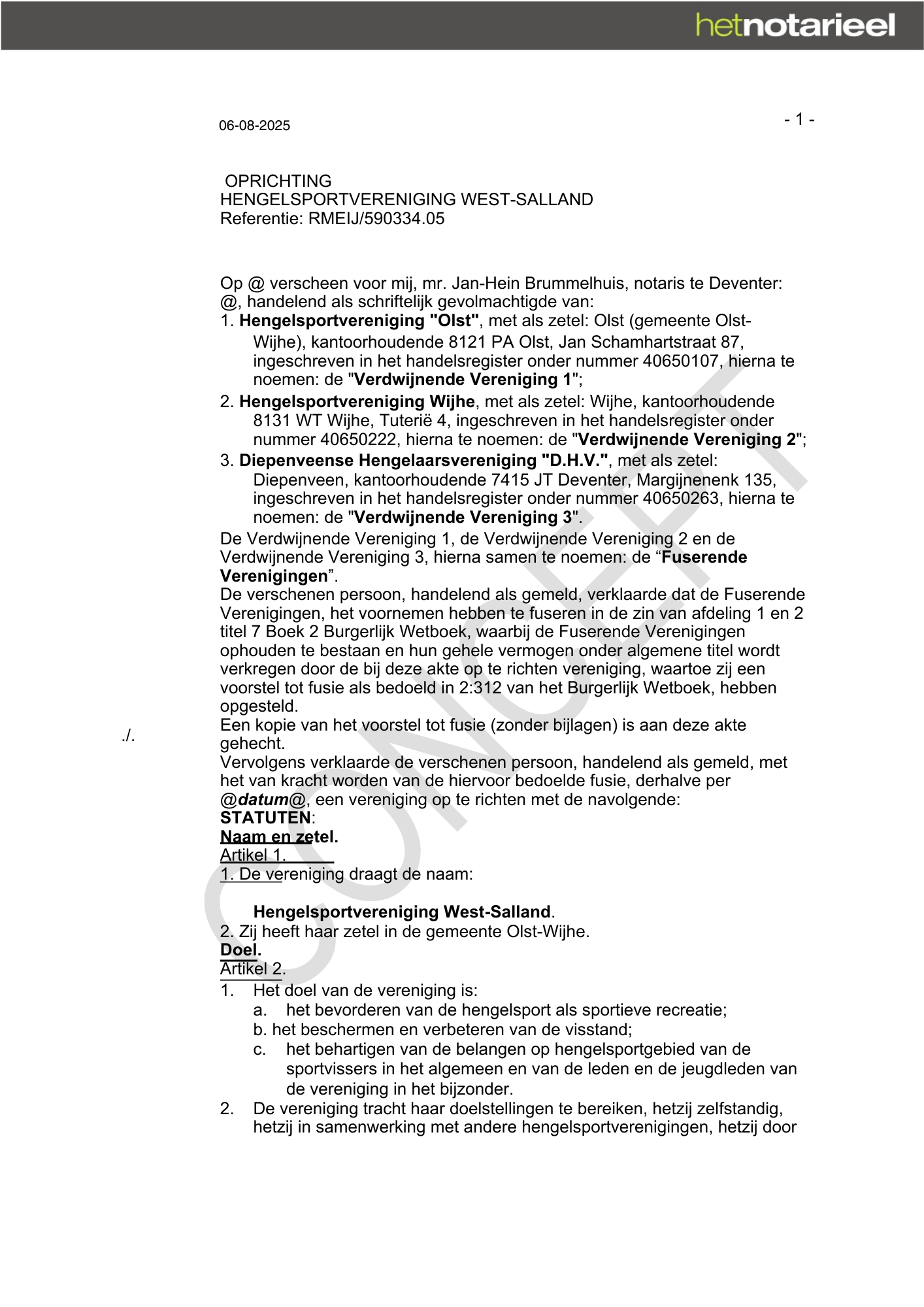 CONCEPT akte van oprichting Hengelsportvereniging West-Salland