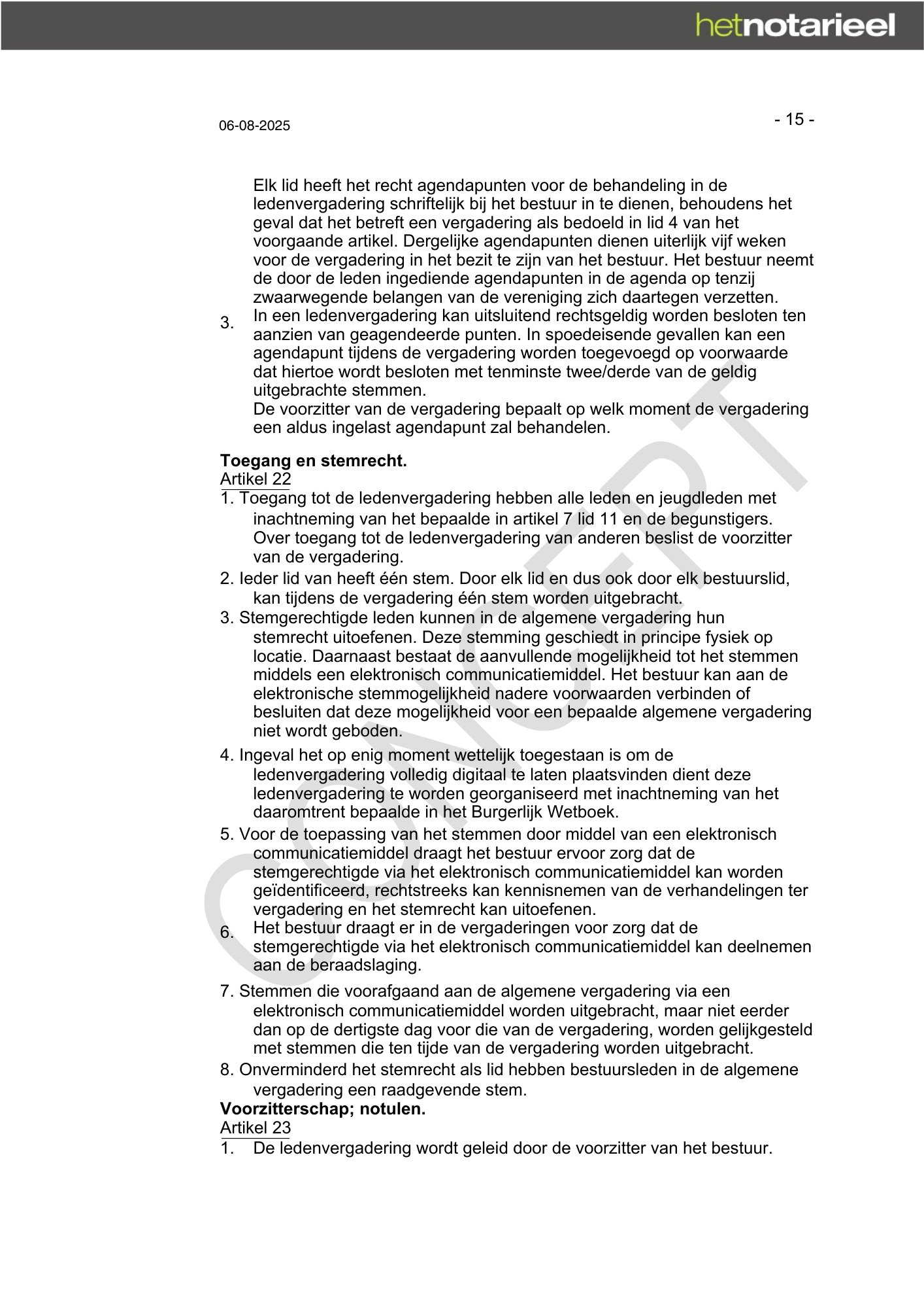 Bijlage Uitnodiging Extra Algemene Ledenvergadering